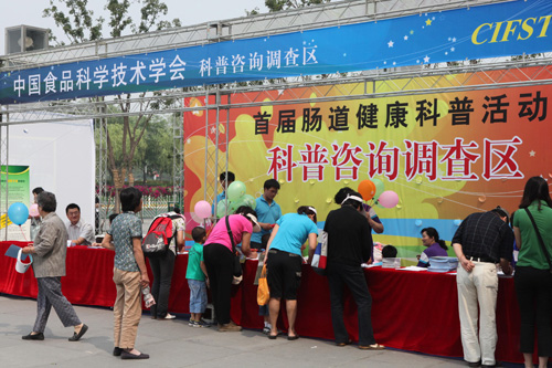 為引起消費者對腸道健康的重視,普及乳酸菌與腸道健康相關(guān)知識,以科技引領(lǐng) 綠色消費,享受健康生活,中國食品科學(xué)技術(shù)學(xué)會于2010年6月5-6日在中國科技館西廣場舉辦了大型戶外“首屆腸道健康科普活動”。此次活動得到了中國 科協(xié)、宋慶齡基金會事業(yè)發(fā)展中心以及中國營養(yǎng)學(xué)會的大力支持。