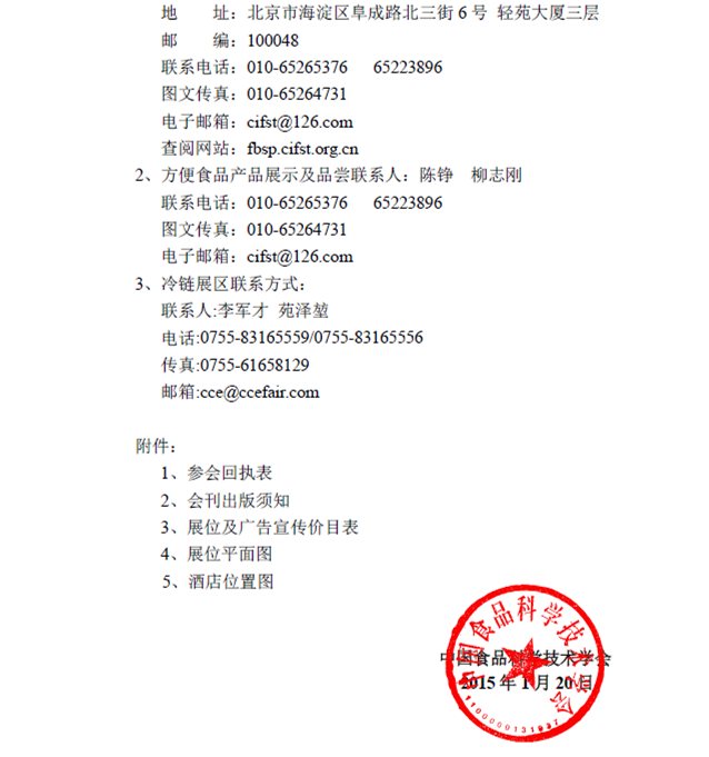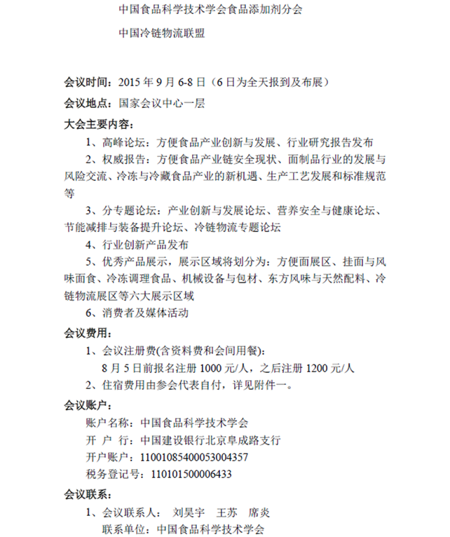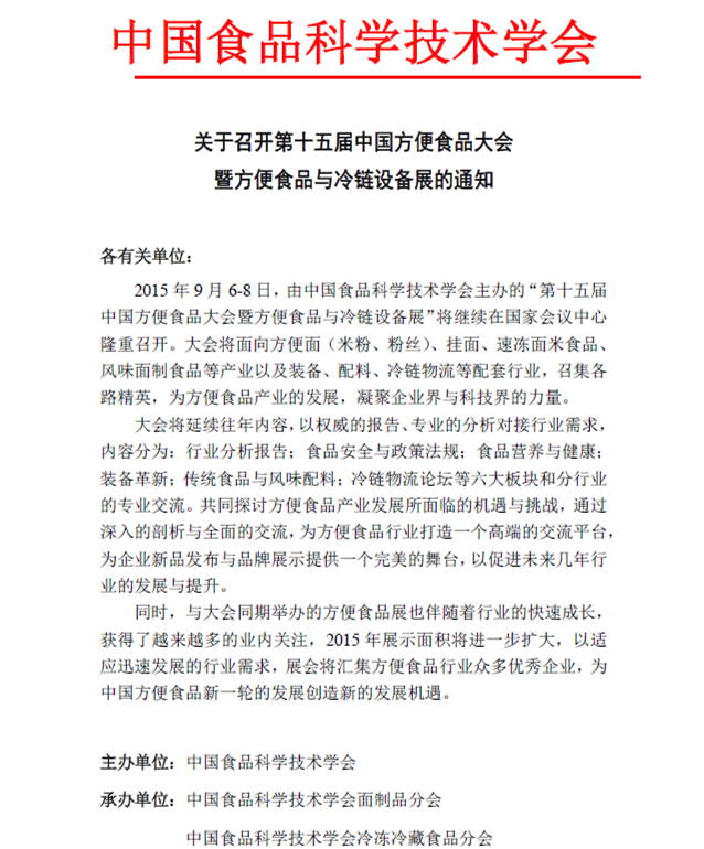 關于召開第十五屆中國方便食品大會暨方便食品與冷鏈設備展的通知